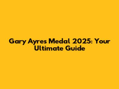 Gary Ayres Medal 2025: Your Ultimate Guide